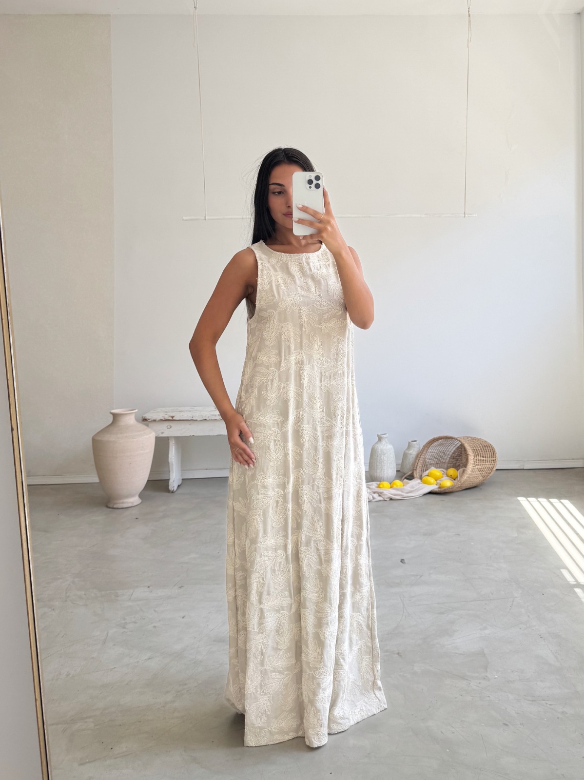 Descripción: Vestido largo con cuello redondo. Manga sisa.
