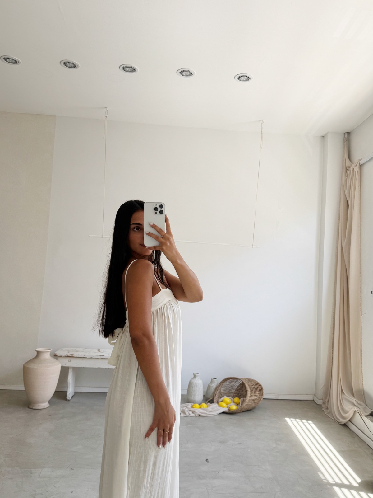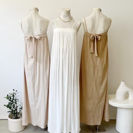 Descripción: vestido largo con tirantes para atar en cuello. Detalle de forro interior combinado a tono.