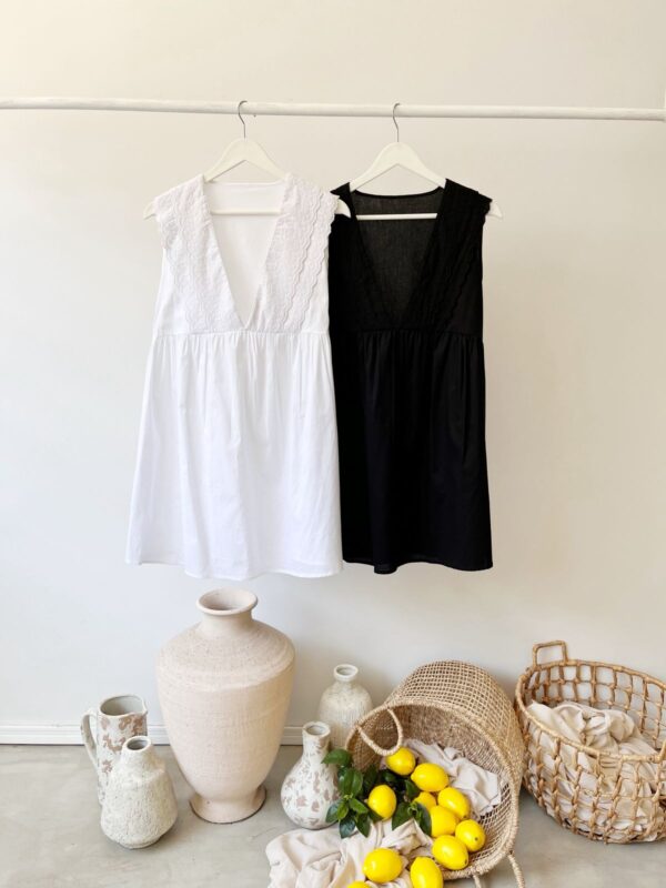 Descripción: Vestido corto de escote pico. Detalles en busto.