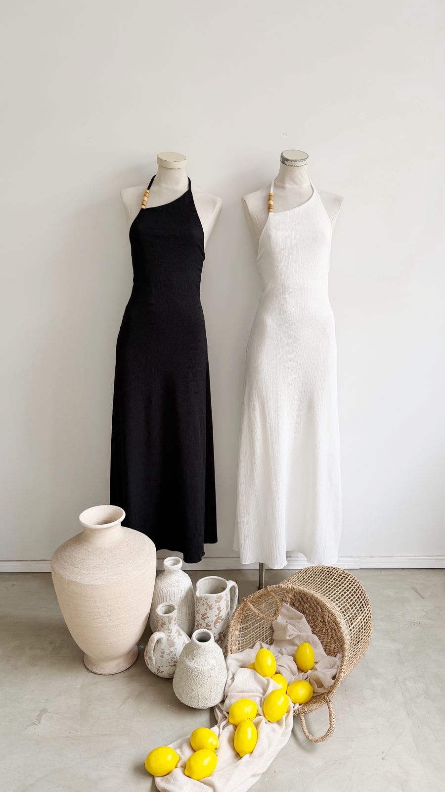 Descripcion: Vestido con hilo elastico en cintura. Tira para atar en escote.