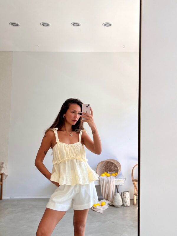 $23,000Descripcion: short de cintura elastica. Detalles de volados en bajos.