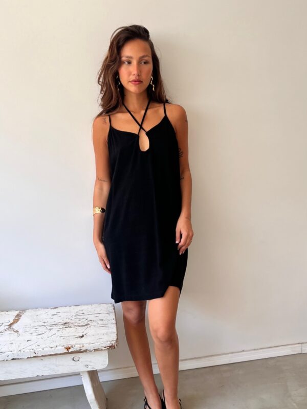 $18,500Descripción: Vestido corto con tiras para atar en hombros y cuello regulables.