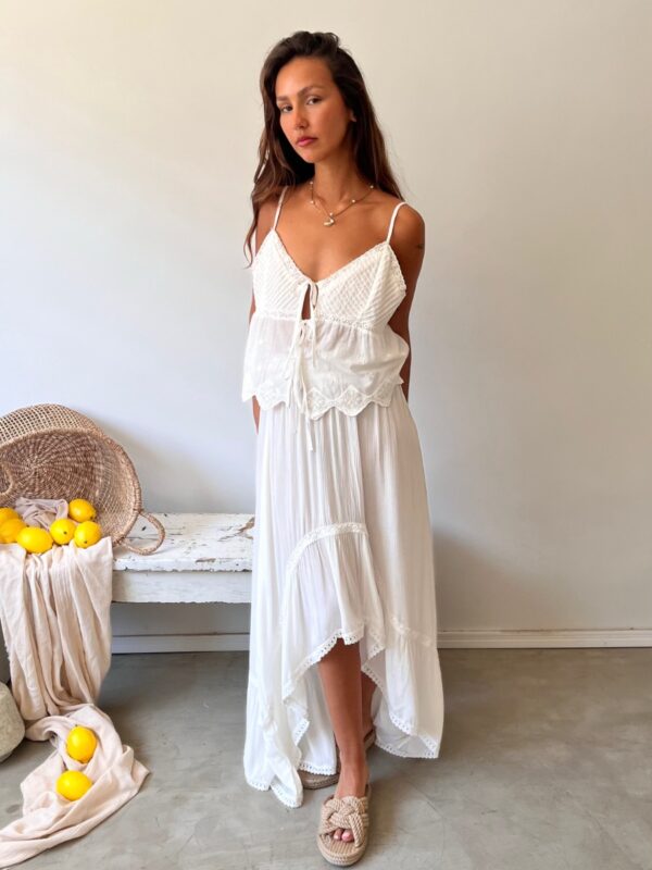 $28,000Descripción: Maxifalda con cintura elastizada. Detalles de volantes.